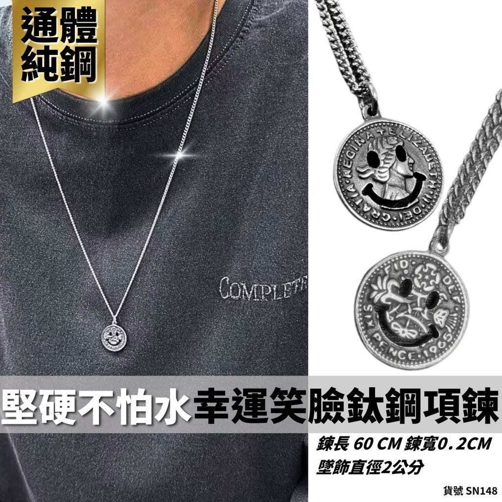 韓國空運 幸運幣 笑臉 墜飾 鈦鋼 現貨 實拍 項鍊 男 仿舊 316L 可碰水 細鍊 SN148 – LITTLE THINGS STUDIOS